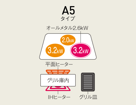AシリーズはグリルにもIHが搭載された上位グレードです。
